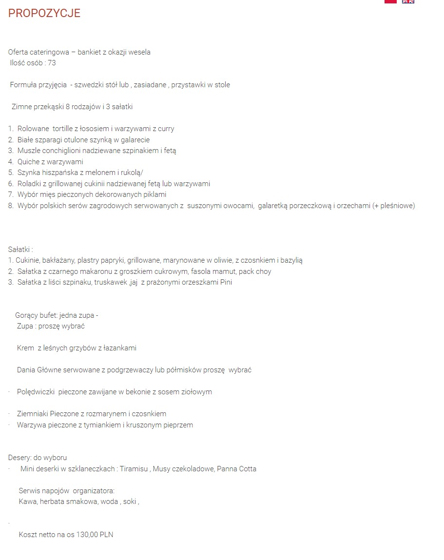 i osób prywatnych. Catering na imprezy firmowe, imprezy sportowe, wesela, chrzty, przerwy kawowe